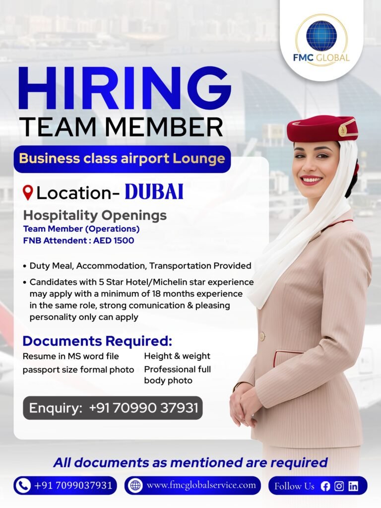 FMC Specialised Recruitment focuses on connecting skilled candidates with the right opportunities across aviation, hospitality, and service industries. Our expert-driven process ensures precise talent matching based on each organization’s unique requirements.